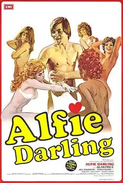 Alfie Darling (also known as Oh Alfie! and Oh Alfie) is a 1975 British comedy-drama film written and directed by Ken Hughes, and starring Alan Price, Jill Townsend, Paul Copley and Joan Collins.[2] It is the sequel to Alfie (1966), with Alan Price taking over Michael Caine's role. It is based on the 1970 novel of the same name by Bill Naughton (who wrote the play upon which the first film was based).[3][4] Price also wrote the title song.[5] The film premiered at the Universal Cinema in London on 6 March 1975.[6]