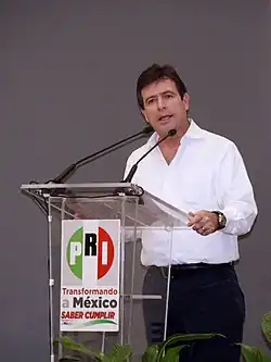 Elías Serrano unsuccessfully ran for Governor of Sonora in the 2009 state elections, coming in second to his cousin, Guillermo Padrés Elías.[2][3] A rancher who was known as El Zurdo de Avispe (English: The Lefty from Avizpe), he was later elected the president of the PRI's Sonora branch.[4]