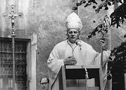 Viewed as a conservative, Bengsch did not involve himself in political affairs.[1] He was created cardinal-priest of S. Filippo Neri in Eurosia by Pope Paul VI in the consistory of 26 June 1967. As Bengsch was the first East German to receive the red hat, this was seen as an act to better the Church's relations with East Germany.[1] He was also the youngest prelate to be elevated at the ceremony.[2] Berlin's bishop was one of the cardinal electors in the conclaves of August and October 1978.