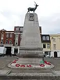 War memorial Parliament Square, Hertford, Hertfordshire 1922 Sculpture on pedestal Bronze and Portland stone Grade II Q26559085 Architect, Aston Webb[55][56]