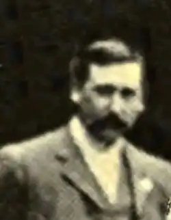 From 1883 Ellis was a member of the Photographic Society (which later became the Royal Photographic Society). He was one of the founders of the Professional Photographers' Association and at various times acted as Secretary (1901-1903), President (1903 and 1919), and General Secretary (1919 until his death).[1] He specialised in theatrical photography, at first recreating scenes from theatrical productions in his studio and later photographing them in situ in the theatres. Among these is his historically important image of the original production of Lady Windermere's Fan (1892) by Oscar Wilde at St James's Theatre in London. Showing a scene from Act III, it depicts the actors George Alexander, H. H. Vincent, James Nutcombe Gould, Adolphus Vane-Tempest and Benjamin Webster.[4][5]
