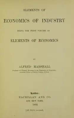 - ^ a b Reisman, David (2013). Alfred Marshall: Progress and Politics (Routledge Revivals). New York: Taylor & Francis. p. 119. ISBN 978-1136703447.