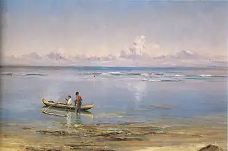 Alfred Richard Gurrey Sr. (1852–1944) was an English-born landscape painter who moved to the United States at age 20. In 1900, his employer, Fireman's Fund Insurance Company, transferred him from San Francisco to Hawaii. In Hawaii, he worked as an insurance adjuster and was secretary of the Board of Fire Underwriters of the Territory of Hawaii. Although without formal art training, he painted Hawaiian landscapes and opened an art and antiques store in Honolulu.[1] Gurrey was a member of the Kilohana Art League.[2] In 1916, he retired from the Board of Fire Underwriters and moved to Kauai, where he continued to paint. His son, Alfred Richard Gurrey Jr. (1874–1928) and daughter-in-law, Caroline Haskins Gurrey (1875–1927), were photographers active in Hawaii.
