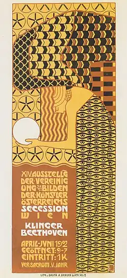 In his early career, Roller was very active as a graphic designer and draughtsman. He designed numerous covers and vignettes for the pages of the Secessionist periodical Ver Sacrum, as well as the posters for the fourth, fourteenth, and sixteenth Secession exhibitions. He also designed the layout of the exhibitions themselves. Some of his work, particularly the lettering, influenced later psychedelic concert poster art.