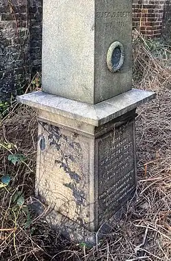 After two years of ill-health he died 19 April 1873 and was buried in the Derby family grave in Highgate Cemetery with his father and mother, Lucy.