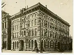 In 1877, Zucker relocated to the coastal city of Galveston. There, he became the partner of John Moser (1832-1904), an architect who moved there from Toledo, Ohio.[3] Zucker married Moser's daughter, Augusta ("Gussie") Emilia Moser.[4] She died in 1878 in the yellow fever epidemic in Vicksburg, Mississippi, just three months after their marriage.[5] Zucker had left to establish a branch office of the firm in Vicksburg. The partnership lasted until 1880, when Moser relocated to Atlanta.[6] By virtue of the firm's design for the Mississippi Agricultural and Mechanical College at Starkville, Zucker was appointed State Architect of Mississippi. Due to his poor health, Zucker resigned from his position in 1882 and returned to Europe. The following year, he returned to New York and found work in the office of noted architect Henry Fernbach. Upon Fernbach's death that same year, Zucker founded the firm of Alfred Zucker & Company, with John R. Hinchman as his partner. This association lasted until 1889, after which both Zucker and Hinchman practiced alone. From 1891 to 1893 Zucker employed John H. Edelmann as a designer in his office. Edelmann is known to have designed full buildings for Zucker, most prominently the Decker Building. Edelmann left after 1893, but his work inspired Zucker's later designs until at least 1901.