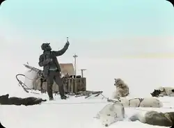 In 1909, de Quervain led an expedition to Greenland. From Ikerasak, E. Bäbler and A. Stolberg accompanied him on a journey ca. 250 km onto the inland ice sheet. Subsequently, with Bäbler and Arnold Heim, he ascended the Karajak Nunataks to survey the glaciers for comparison with observations by Erich von Drygalski 16 years earlier.[4]