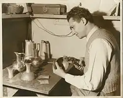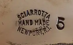 Sciarrotta's work was commissioned for gifts presented by the City of Newport to visiting dignitaries, including President Eisenhower, the Italian President Giovanni Gronchi, fighter Rocky Marciano,[2] and Mayor Delmas of Antibes, France in 1962. In 1958, a Sciarrotta bowl was commissioned as a gift to the Ambassador of Israel to the United States Abba Eban, on the occasion of the Newport Rhode Island Jewish Community's Tercentenary, marking the 300th anniversary of the founding of the oldest Jewish congregation in the United States. The bowl was presented to Ambassador Eban by Colonel Milton E. Mitler at the Belcourt Palace in the presence of Governor Dennis Roberts.[3] Also in 1962, a Sciarrotta bowl in the shape of the hull of a 12-meter yacht was presented to Sr. Frank Packer, skipper of the “Gretel”, America’s Cup challenger for Australia. His bowls were presented as trophies for horse races around the country. Several of his pieces are on display at the Kentucky Derby Museum at Churchill Downs. His work is currently displayed in the Newport Art Museum, and his former studio is now an art school run by the Museum.