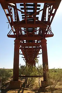 The Algebuckina Bridge is a Victorian era railway bridge in the Australian state of South Australia located about 55 kilometres (34 mi) south-east of the town of Oodnadatta in the locality of Allandale Station on the route of the now-closed Central Australia Railway.[1][2] It opened in January 1892.[3][4][5] It was the longest bridge in South Australia[3][5] until construction of the Seaford suburban rail line across the Onkaparinga River south of Adelaide in 2014.[6]