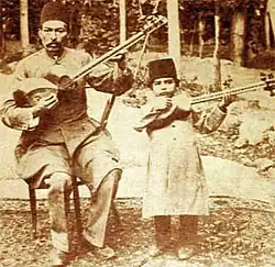 Young Ali-Akbar Shahnazi (right) and his father Mirza Hossein-Qoli (left)