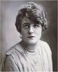 The censor, the Lord Chamberlain, hastened to see the show, and demanded changes.[11] After an uncertain start, the revue was a huge success; the song "We don't want to lose you, but we think you ought to go", encouraging young men to join the army, was a particular hit for Delysia.[7] Within weeks the other items in the triple bill were dropped, and Odds and Ends was expanded to a full evening, with only a brief curtain raiser.[12] Within two months of the opening, Delysia was an established star, invited to take part with Muriel Foster, Charles Hawtrey, Oscar Asche and Isidore de Lara in a charity matinée attended by Queen Alexandra.[13] It was the first of many charity appearances that Delysia made during the war. Her biographer Anne Pimlott Baker writes that Delysia entertained wounded troops, and took many French refugees and orphans into her home.[4] In 1916, she made her film début, and took a leading role in SHE, an adaptation of the Rider Haggard story, about a woman's passion for a young traveller.[14]