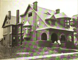 Her business talents led her into active business life, and she became the head of the successful real estate, insurance, and investment brokerage house, Mrs. Alice Houghton & Co., in 1888. Her management was practical and progressive, and her brokerage house was known throughout Washington. She was a prudent financier, her business methods were good, and her tact enabled her to compete with men in the arduous field of brokerage.[1] Then came the panic of 1893, and Houghton's wealth was wiped out almost in a day.[5]