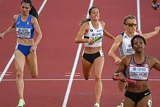 Alice Mangione (born 19 January 1997) is an Italian sprinter, specialising in the 400 metres.[3] She competed at the 2020 Summer Olympics, in the 4 × 400 m relay and 4 × 400 m mixed relay.[4]