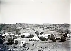Construction of the telegraph station began adjacent to the waterhole in November 1871 under the supervision of Gilbert Rotherdale McMinn.[2] A number of structures were eventually built, including a harness room, buggy shed, police station, blacksmith's workshop, telegraph office, kitchen building and station master's residence. Supplies arrived from Adelaide just once per year, so self-sufficiency was critical. Stockyards and a large garden area were also developed. While the waterhole supplied the settlement with water, a well was later sunk to maintain supply during drought periods.[4] After completion, the telegraph station operated for 60 years.
