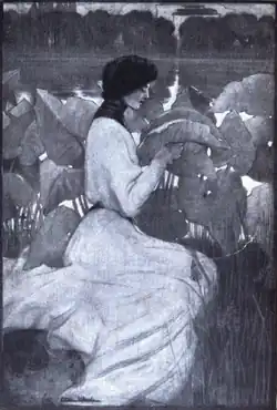 Ullman was born in Goshen, Indiana, the daughter of future federal judge William Allen Woods.[1] She received her earliest education at the Girls Classical School of Indianapolis.[2] In the mid-1890s she studied art at the second Indiana School of Art in Indianapolis, following this with a stint at the Shinnecock Hills Summer School of Art, run by William Merritt Chase in 1891. From 1897 to 1898 she was at the Art Students League of New York, and from 1898 to 1903 she was at the New York School of Art; she also spent time in Paris at the Académie Colarossi and Académie Carmen. When in Paris she rented a large studio for herself in order to work from home - during this time she met and became friends with Mina Loy who was also studying in Paris.[3] Her instructors included Chase, T. C. Steele, and William Forsyth.[1] While in Paris she came to know Margaret Cravens, Gertrude Stein, Ezra Pound, and other members of the American expatriate arts community.[2]