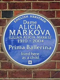 - ^ "Alicia Markova | Prima Ballerina | blue plaques". English Heritage. Retrieved 15 June 2025.