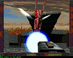 At the start of each level, a screen of text is drawn, informing the player of their character's circumstances.[2][5] During combat, the player depletes their weapons' ammunition and must replace one for each by finding and picking up refill packs. The player's character may also sustain injuries, and their energy is replenished after picking up a first aid kit.[3] The player can carry more energy and ammunition than the GUI can display.[4] Some doors are locked, and the player must first find the key to open them.[2] The levels of The Killing Grounds are mission-oriented, with the player instructed to complete a set of tasks, such as destroying a structure.[6] The instructions are relayed as text at the bottom of the screen revealing the player character's inner thoughts.[12] In later levels, an anti-gravity device is found and can be used for brief flights, and it is limited to a few seconds of use before it must be recharged at a fuel terminal.[4][13] The player can toggle the game's automap feature, which can be panned and zoomed in and out and is automatically drawn as the player discovers new areas.[3][14] Instead of passwords like the previous game, between levels, up to five games can be saved.[4]