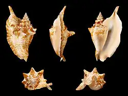 Aliger gallus, previously known as Strombus gallus, common name the rooster conch or rooster-tail conch,[1] is a species of medium-sized sea snail, a marine gastropod mollusk in the family Strombidae, the true conchs.[2]