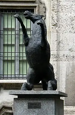 Aligi Sassu was born in Milan, Lombardy, the son of Lina Pedretti (from Parma, Emilia) and Antonio Sassu (from Sassari, Sardinia). His father was one of the founders of the Italian Socialist Party in Sassari in 1894, and had moved to Milan in 1896, where he married Pedretti in 1911. At the beginning of the 1920s, the Sassu family moved back to Sardinia to Thiesi, where Antonio opened a shop. After three years, the family returned to Milan, where Aligi got interested in art and enrolled to the Brera Academy of Fine Arts.[1] Together with his friend and designer Bruno Munari, he decided to introduce himself to the Futurism leader, Filippo Tommaso Marinetti.