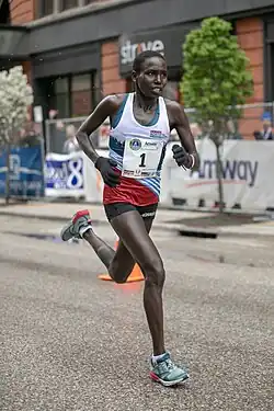 Aliphine Chepkerker Tuliamuk (born April 5, 1989) is a Kenyan-born American long-distance runner.[2] She placed first at the 2020 United States Olympic Trials in Atlanta and represented the United States at the 2021 Olympic Games in Tokyo, Japan.[3][4][5] Tuliamuk has been a world class athlete since placing 9th in 21:09 at 2005 IAAF World Cross Country Championships – Junior women's race.[6] Tuliamuk ran 33:43 to place 15th at 2017 IAAF World Cross Country Championships.[7] Tuliamuk placed 3rd at 2019 Rotterdam Marathon in 2:26:50.