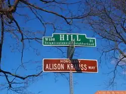 In March 2015, her hometown of Champaign, Illinois, designated the 400 block of West Hill Street as "Honorary Alison Krauss Way".[122][123]