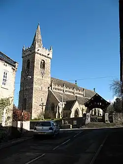 The church is built of magnesian limestone and has a pitched slate roof. The church has a tower to its western side with a spire atop. The tower has three offset stages, a round-headed window and clocks on the southern, northern and western face.[3] The church has an ornate lychgate on the southern side of its boundaries.