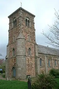 The parish church of All Saints was built in the Norman Revival style, with the north aisle having a heavy granite arcade. The architect was John Hayward of Exeter. The Norman font came from the chapel at Menadarva.[5] It was consecrated by the Lord Bishop of Exeter on 21 July 1845.[6]