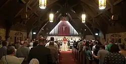 All Saints is known for combining high church liturgical worship with evangelical theology and charismatic spirituality.[15] As is customary for Anglican cathedrals, All Saints offers daily morning or evening prayer services in St. Mary's Chapel according to the Daily Office and observes the Eucharist on designated feast days.[16]