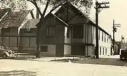 The church was designed by architect John C. Cochrane and built in 1883 at the corner of Wilson and Hermitage Avenues. Previously, the congregation gathered in a nearby Methodist church.[4] The building was created in stick style as shown by the use of vertical beams and decorative shingles and continues to be a rare example of stick style architecture in the city,[2] in addition to being Chicago's oldest wood-frame church.[5][6] Wood was likely used because other available materials, such as stone, were too expensive.[7] Furthermore, the church's location was outside of Chicago's city limits, where wood construction was not permitted after the Great Chicago Fire in 1871.[7] The stained glass windows were originally designed by the Healy & Millet firm.[8] John Hulla designed the adjoining rectory in 1905 in a Tudor Revival style. The congregation intended to demolish and replace the sanctuary in the early 1900s, however the Great Depression stalled their plan.