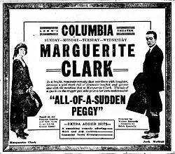 All of a Sudden Peggy is a lost[1] 1920 American silent comedy romance film directed by Walter Edwards and starring Marguerite Clark and Jack Mulhall.[2][3] It was produced by Famous Players–Lasky and distributed by Paramount Pictures. It is based on a 1907 Broadway play All-of-a-Sudden Peggy which starred Henrietta Crosman.[4] It is Clark's third to last film. Director Edwards died in Hawaii that same year of 1920.