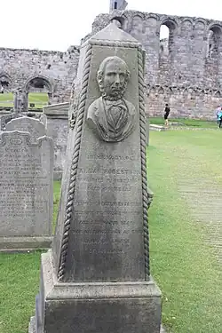His grave is in the churchyard of St Andrews Cathedral, just west of the central bell-tower. It is a sandstone obelisk bearing his sculpted portrait. His epitaph reads: "Allan Robertson - who died 1st Sept. 1859 aged 44 years old. He was greatly esteemed for his personal worth and for many years was distinguished as the champion golfer of Scotland."