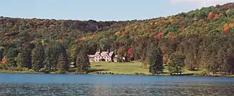 ![]() The park's Red House Administration Building from across Red House Lake. | |