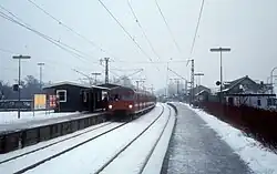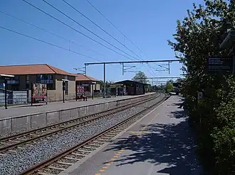 Allerød station (until 1952: Lillerød station) is an S-train railway station serving the satellite town of Lillerød in Allerød municipality north of Copenhagen, Denmark.[1] The station is located in the centre of the modern town, c. 0.5 kilometres (0.31 mi) from the historic village of Lillerød and close to the Tokkekøb Hegn and Ravnsholt Skov forests.