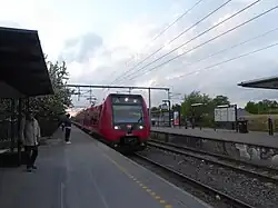 Allerød station is served regularly by trains on the A-line of Copenhagen's S-train network which run between Hillerød and Hundige / Køge via central Copenhagen.[4] Trains have a journey time to central Copenhagen of around 30 minutes and to Hillerød of around 5 minutes.[1]