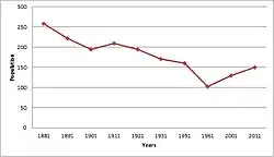 As the graph shows, in 1881 the Parish of Allerton Mauleverer with Hopperton had a population of over 250. But since then, the number of residents have gradually declined constantly until 1911. This as shown has fluctuated over time with its most significant decrease in the 1950s. There are reasons for this decline in population in the mid 19th century. One reasons is due to the growth of industrial districts in Lancashire and the North-East in the mid 19th century, where cotton textiles were produced.[19] This caused the majority of small parishes in North Yorkshire to see a decline in residents because citizens moved to the industrial areas to look for a better life. The population also reflects the major decline in residents, from 160 in 1951 to 100 in 1961, due to the change in parish boundaries during the 1950s.