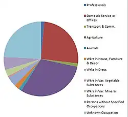 The pie chart below shows the occupational structure of Allerton Mauleverer in 1881. The graph below shows that the majority of occupations were of domestic service or offices and agriculture industry. The pie chart also shows a large proportion in unknown occupations.