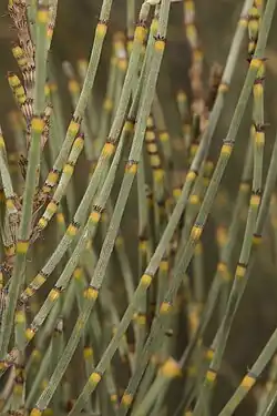 - Allocasuarina acutivalvis subsp. prinsepiana (C.R.P.Andrews) L.A.S.Johnson (previously known as Casuarina prinsepiana)[12] has articles 12–20 mm (0.47–0.79 in) long with 11 to 13 teeth 0.4–1.0 mm (0.016–0.039 in) long, the cone body 25–32 mm (0.98–1.26 in) long and 18–22 mm (0.71–0.87 in) wide.[13][14]
