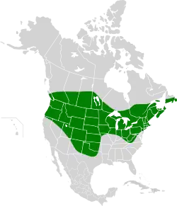 A. fasciatus is considered to inhabit northern regions of North America, whereas A. socius inhabits southern regions.[6] In areas where topography can vary, like in mountain regions, A. fasciatus is believed to be found at higher elevations, whereas A. socius is believed to be found in lower elevations.[8] This can be referred to as a mosaic hybrid zone.[8] A mosaic hybrid zone occurs because the habitat ranges for A. fasciatus and A. socius overlap.[9] While it is known that for the most part A. fasciatus remains separated from A. socius when breeding, the potential for interbreeding can occur.[6]