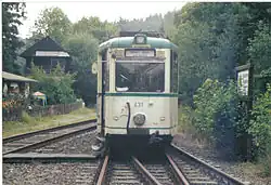 A passenger train ran again on the section between Brilon Stadt and Brilon Stadt for the first time in over 30 years on 10 December 2011.[5] Since then, through trains have run to and from Dortmund from Monday to Friday. On Saturdays, Sundays and public holidays trains run to and from Bestwig and Korbach.[6]