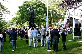 Almedalen Week is an annual event taking place in week 26 in and around Almedalen, a park in the city of Visby. It is coordinated by Gotland Municipality and the cost of the different activities is carried by the organization responsible for it.[13] Each day of the week is dedicated to one of the political parties represented in the Riksdag, on a rotating schedule.[14] In 2011, the number of days were extended to eight since there were then eight parties in the Riksdag.[8] A number of other lobbyists, organizations, companies and representatives from municipalities and countries are also present.[14]