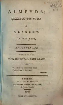 Almeyda, Queen of Granada is a 1796 tragedy play by the British writer Sophia Lee.[2]