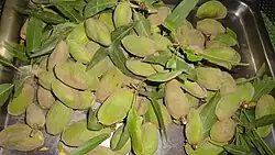 Almond production in Afghanistan is a significant contributor to the nation's agricultural economy. In 2009, it was ranked ninth in the FAO list of almond-producing countries of the world, though its domestic production is limited to 2% of the world production.[1] Afghanistan's almond production has shown a rising trend in the recent decades. Within the country, the southwestern and northern regions have the maximum area under cultivation with Kandahar and Samangan provinces,[2][3] accounting for much of its production, followed by the provinces of Uruzgan, Kunduz, Balkh, Saripul and Daykundi.[1][4][5][6] As of 2012, the cultivated area of almonds was 13,490 ha with a yield rate of 45,960 hectograms (one hectogram = 100 grams) per ha, recording a total yield of 62,000 tonnes, with conducive climatic conditions for growing variety of almond landraces of hard shell and soft shell varieties.[7][8] The preferred markets for the export of Afghan almonds are India and Pakistan,[9][5] with the former preferred because of better profitability.[10]