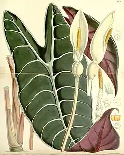 - ^ Nauheimer, Lars; Boyce, Peter C.; Renner, Susanne S. (2012). "Giant taro and its relatives: A phylogeny of the large genus Alocasia (Araceae) sheds light on Miocene floristic exchange in the Malesian region". Molecular Phylogenetics and Evolution. 63 (1): 43–51. Bibcode:2012MolPE..63...43N. doi:10.1016/j.ympev.2011.12.011. PMID 22209857.