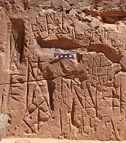 Monograms of Archangel Michael in a quarry near Meroe. Such monograms seem to have been the most popular epigraphic expression in Alodia, while longer inscriptions are comparably rare.[56]