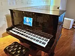 Quarter-tone grand piano (1924) designed by Hába, built by Förster firm; it consists of two independent bodies, features the three manuals (aux. short key/quarter tone higher/normal).