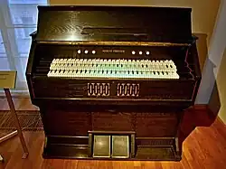 Sixth-tone harmonium (1937) designed by Hába, built by Förster firm; it features triple-reed, three manuals, two knee levers, and six registers.