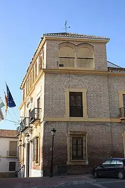 Its architectural style, a blend of Renaissance Mudéjar with influences from local design, sets it apart. With its striking appearance, the palace boasts two floors and a penthouse, connected by a Renaissance-style staircase. An interior courtyard featuring stone columns ending in semicircular arches reflects the classic Mudéjar architecture readopted during the Baroque period, adding to its charm and grandeur.[5]