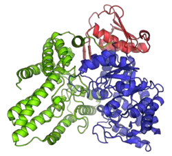 Human α-N-acetylglucosaminidase coloured by domain.[1] PDB: 4XWH