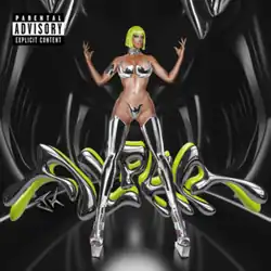On 17 August, Karleuša's 45th birthday, she made a surprise announcement that her twelfth studio album Omega, that she had worked on concurrently with Alpha, would be released on 20 August. She simultaneously shared its cover art.[32] The album was released at 12:00 CEST,[33] and featured guest appearances from Devito and DJ Hamida on the only collaborative track "Nepogrešivo" (Unmistakably).[34] The album also featured the long anticipated track "La Bomba"; however, the final version was a solo track and not a collaboration with Vittar as expected.[35] The duet version leaked in full on 22 August. According to Telegraf.rs, the track wasn't officially released due to Universal failing to make a deal with Vittar's Brazilian label.[36] The same night, the Belgrade Tower was lit up with Karleuša's initials in neon green colour,[37] and an official promotional event was held at the rooftop of the Galerija Belgrade shopping mall. Karleuša's outfits for the event were compared by Showbuzz.hr to those of Madonna and Lady Gaga.[38]