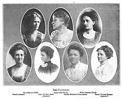 In the fall of 1885, James Hamilton Howe, the first dean of the Music School at DePauw University in Greencastle, Indiana, invited seven women from the school to a meeting to form a fraternity.[2][3] Those women were Anna Allen Smith, Olive Burnett Clark, Bertha Deniston Cunningham, Amy DuBois Rieth, Nellie Gamble Childe, Bessie Grooms Keenan, and Estelle Leonard.[2] Alpha Chi Omega was formed on October 15, 1885.[2][3]